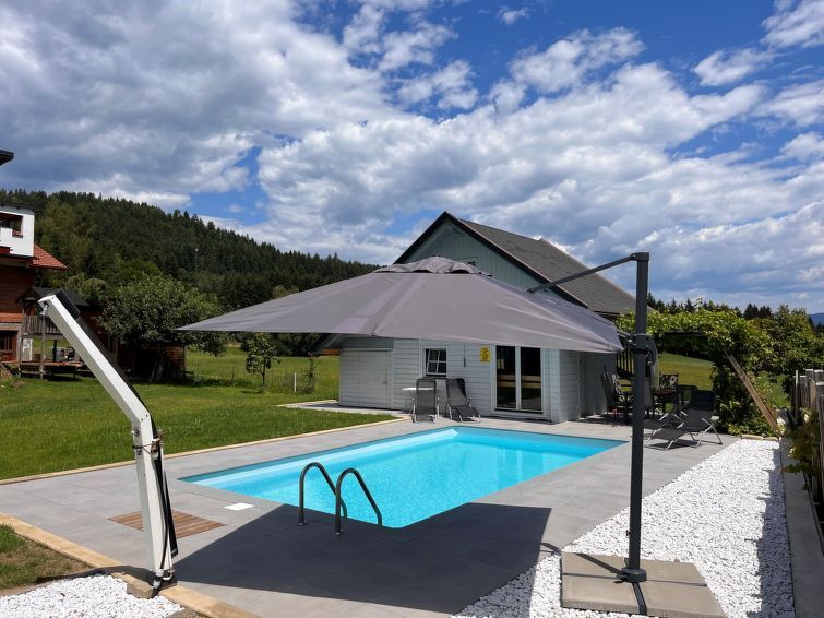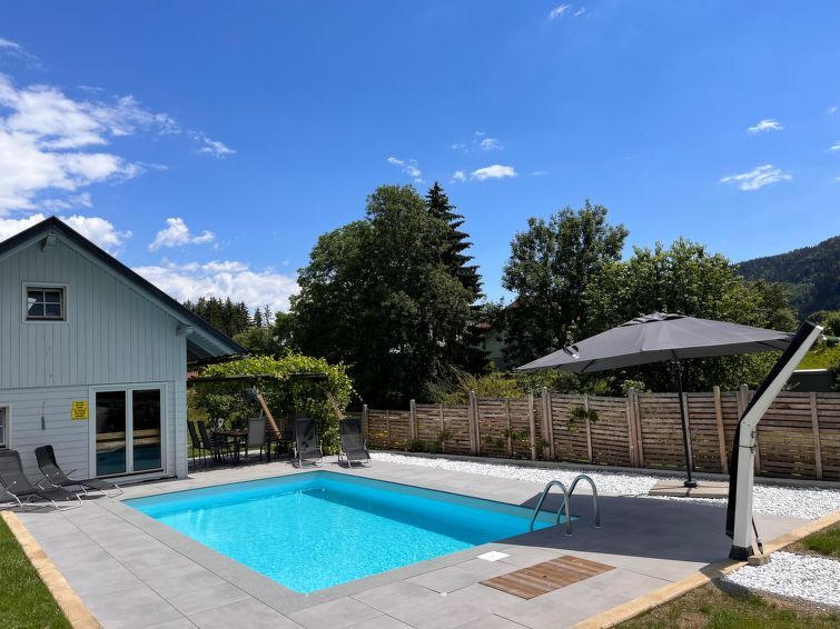 Belle maison à 3 apts "Frank". Dans le quartier de Dellach, à 7 km du centre de Feldkirchen, situation tranquille, ensoleillée, à 200 m de la forêt, à 8 km du lac, à 20 km du domaine skiable, dans la verdure. En commun: jardin 1'500 m2, pré, piscine (7 x 4 m, disponibilité saisonnière: 15.Mai. - 15.Sep.). Ping-pong, tonnelle, meubles de jardin, barbecue, espace de jeux pour les enfants. Infrastructures de la Maison: terrasse ensoleillée, chauffage central. Place de parking. Magasin d'alimentation 6 km, restaurant 6 km, arrêt de bus 200 m, gare ferroviaire "Feldkirchen in Kärnten" 6 km, plage aménagée 6 km, baignade en lac "Ossiachersee" 8 km. Terrain de golf (18 trous) 6 km, tennis 4 km, télécabine 20 km. Les domaines skiables de renommée sont facilement accessibles: Gerlitzen (Kanzelbahn) 20 km, Simonhöhe 22 km, Bad Kleinkirchheim 34 km. Les lacs connus sont facilement accessibles: Ossiachersee 8 km, Wörthersee 15 km. Veuillez noter: le propriétaire habite dans la même maison. Le propriétaire a un chien. D’autres appartements sont également proposés à la location dans cette maison de vacances.