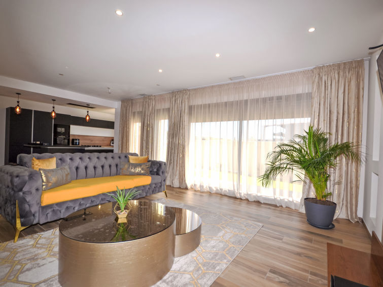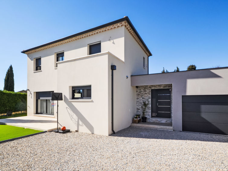 Villa 4 pièces 132 m2 sur 2 niveaux. Aménagement agréable et moderne: séjour/salle à manger 70 m2 avec table pour les repas et TV (écran plat). Sortie sur le jardin. Cuisine ouverte (four, 3 plaques à induction, grille-pain, bouilloire électrique, micro-ondes, congélateur, cafetière électrique). WC séparé. À l'étage supérieur: 1 chambre avec 1 grand-lit (180 cm, longueur 200 cm), douche. Sortie sur le balcon. 1 chambre avec 2 lits (90 cm, longueur 190 cm). 1 chambre avec 1 grand-lit (180 cm, longueur 200 cm). Salle de bains, WC séparé, double vasque. Air-conditionné. Terrasse. Meubles de terrasse, barbecue (portable), chaises longues (2). A disposition: lave-linge, fer à repasser, lit bébé jusqu'à 2 ans. Internet (Connexion WIFI, gratuit). Veuillez noter: adapté(e) aux familles. Maison non-fumeur. Détecteur de fumée. Annonce d'un particulier (art 155, IV du CGI).