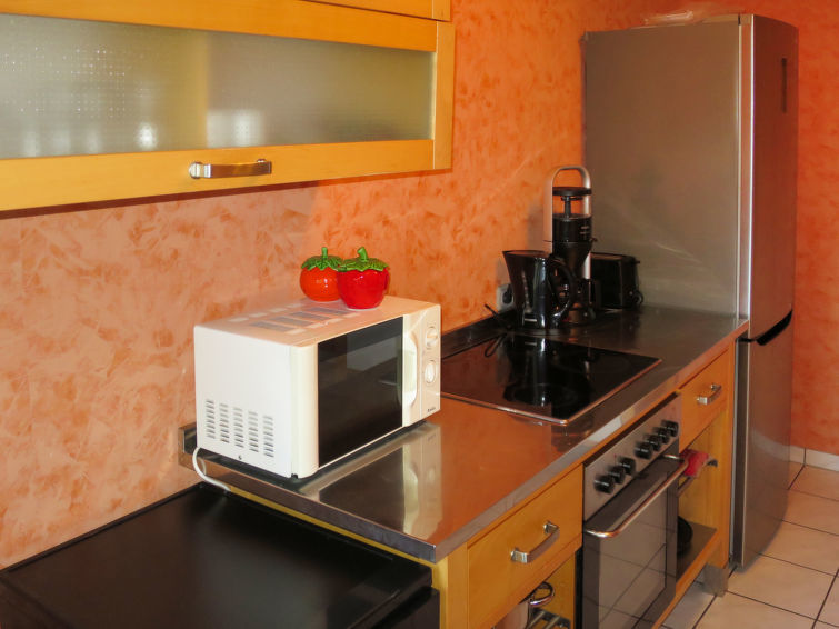 Appartement 3-kamers 80 m2 op de 1e verdieping. Modern ingericht: woon-/eetkamer met Sat-TV (Flatscreen TV). 1 kamer met 1 bed en 1 2-pers bed. 1 2-pers. kamer. Keuken (oven, afwasmachine, 4 keramische glas kookplaten, broodrooster, waterkoker, magnetron, elektrische koffiemachine). Bad/WC. Bergruimte. Ter beschikking: wasmachine, droger. Internet (WiFi, gratis). Niet rokers woning. Maximaal 2 huisdieren/honden toegestaan. Rookmelders, brandblusser.