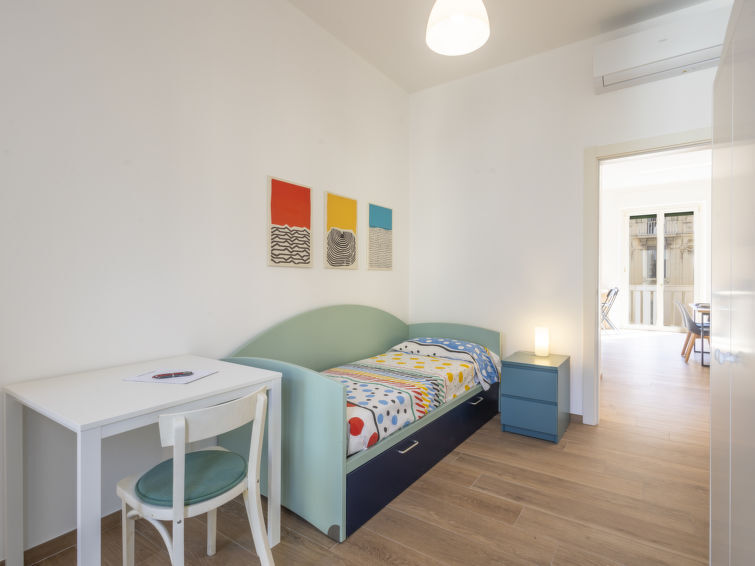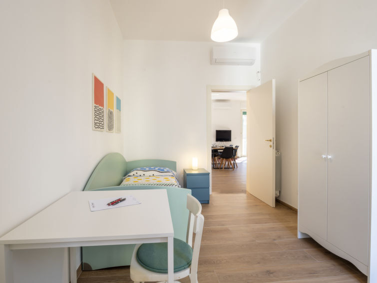Appartement 3-kamers 101 m2 op de 3e verdieping. Ruim en licht, volledig gerenoveerd in 2025, modern en stijlvol ingericht: groot woon-/eetkamer met 1 divanbed, eettafel, TV, radio, CD-speler en stereo-installatie. Uitgang naar het balkon. 1 kamer met 1 bed, 1 uitschuifbaar bed en bad. Uitgang naar het balkon. 1 2-pers. kamer met Kleedkamer met TV. Berging. Groot kookhoek (oven, afwasmachine, 4 inductiekookplaten, broodrooster, waterkoker, diepvriezer, elektrische koffiemachine, pads voor de koffiemachine (Nespresso) extra, combimagnetron). Douche/bidet/WC. Verwarming, air-conditioning. 2 balkons. Ter beschikking: wasmachine, strijkijzer, kinderstoel, kinderbed, haardroger. Internet (WiFi, gratis). Niet rokers woning. Brandblusser. IT015146C268UZSIN2