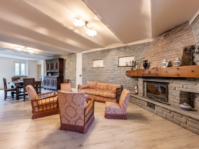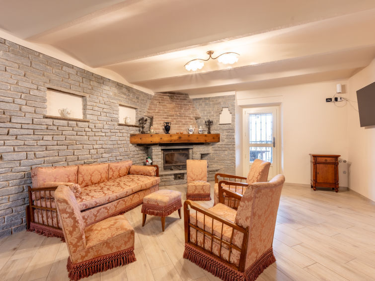 17-kamers cottage op 3 verdiepingen. Smaakvol ingericht: woon-/eetkamer met open haard, eettafel en TV. Uitgang naar het terras. Salon met open haard, aparte WC en TV. Uitgang naar de tuin. Woon-/slaapkamer met 1 2-pers divanbed, eettafel, kookhoek en TV. Uitgang naar de tuin. 1 2-pers. kamer met douche/bidet/WC. Keuken (oven, afwasmachine, 5 kookpitten (vlammen), pizzaoven). Douche/bidet/WC. Bovenverdieping: woon-/slaapkamer met 1 2-pers divanbed, eettafel, kookhoek en TV. Uitgang naar het balkon. Woon-/slaapkamer met 1 2-pers divanbed, eettafel, kookhoek en TV. Uitgang naar het balkon. Woon-/slaapkamer met 1 2-pers divanbed, eettafel, kookhoek en TV. Woon-/slaapkamer met 1 2-pers divanbed, eettafel, kookhoek en TV. 4 2-pers. kamers. Open galerij met afgeschuinde daken met 1 2-pers bed. Open galerij met afgeschuinde daken met 1 2-pers bed. 4 douche/bidet/WC's. Zolderverdieping: (wenteltrap) woon-/eetkamer met 2 2-pers divanbedden, open haard, eettafel en TV. Uitgang naar het terras. 2 2-pers. kamers met afgeschuinde daken, hoogte van het plafond 160 - 270 cm. Kookhoek (4-pits kookplaat, oven, afwasmachine, magnetron, elektrische koffiemachine). Douche/bidet/WC. Gas-verwarming. Verwarming alleen beschikbaar van 15.10. tot 15.04. Balkon, 2 terrassen, gedeeltelijk overdekt. Ter beschikking: wasmachine, kinderbed tot 2 jaar, haardroger. Internet (WiFi, gratis). Maximaal 1 huisdier/hond toegestaan. Rookmelders, brandblusser. IT005060B54CFBNQE4