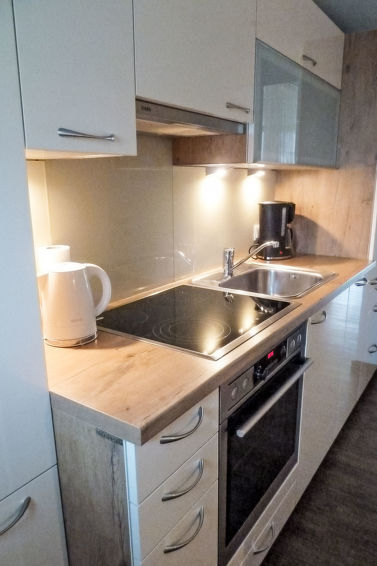 "TOP 4", appartement 1-kamer 33 m2, op de begane grond. Mooi en gezellig ingericht: woon-/slaapkamer met 1 2-pers bed, eettafel, Sat-TV en internationale TV-zenders (Flatscreen TV). Uitgang naar het terras. Kleine kookhoek (oven, afwasmachine, 4 keramische glas kookplaten, waterkoker, elektrische koffiemachine). Douche/WC. Vloerverwarming. Parketvloeren. Klein terras. Terrasmeubelen. Ter beschikking: Internet (WiFi, gratis). Niet rokers woning.