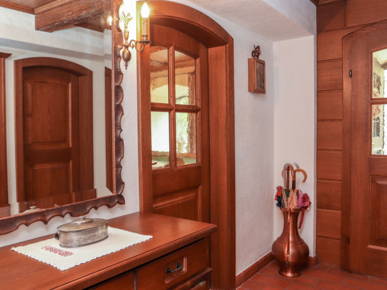 Huis 4-kamers 150 m2. Licht, volledig gerenoveerd, zeer comfortabel en stijlvol ingericht: hal. Eetkamer met eethoek en tegelkachel. Groot woon-/slaapkamer met panoramavenster met 1 2-pers divanbed en Sat-TV. Uitgang naar het terras. Keuken (4-pits kookplaat, oven, afwasmachine, elektrische koffiemachine). Bad/douche, aparte WC. Vloerverwarming. Bovenverdieping: Studio met 1 2-pers bed, eettafel, kookhoek en Sat-TV. Uitgang naar het balkon. 1 groot 2-pers. kamer met 1 2-pers bed en Sat-TV. Douche/WC. Houten vloeren. Klein balkon, groot terras gedeeltelijk overdekt. Terrasmeubelen, ligstoelen, zitgelegenheid. Uitzicht op de bergen en het landschap. Ter beschikking: wasmachine, droger, strijkijzer, haardroger. Internet (WiFi, gratis). Geschikt voor families. Niet rokers woning. 1 huisdier/hond toegestaan. Rookmelders, brandblusser. De garage doet in de winter dienst als skiberging en als berging voor uw fietsen, mountainbikes en sportuitrusting in de zomer. Als u uw sportwagen of oldtimer in de garage wilt, reserveer dan tijdens het boekingsproces. 50336-001014-2020