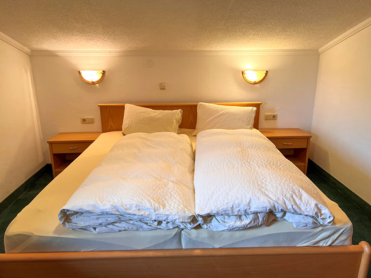 "Top 2", appartement 4-kamers 80 m2 op de 2e verdieping. Ruim en licht, gedeeltelijk afgeschuinde daken, gezellig en met veel hout ingericht: 2e Verdieping: hal. 2 2-pers. kamers. 1 2-pers. kamer met douche/WC. Woonkeuken (4-pits kookplaat, oven, broodrooster, waterkoker, elektrische koffiemachine) met eethoek, Sat-TV, internationale TV-zenders en Flatscreen TV. Uitgang naar het balkon. Douche, aparte WC. Vloerbedekking. Groot balkon. Balkonmeubilair. Mooi panoramazicht op de bergen en het landschap. Ter beschikking: Internet (Internet (WiFi), gratis). Niet rokers woning. Rookmelders. 50613-000400-2020