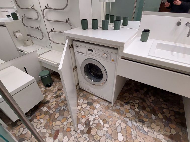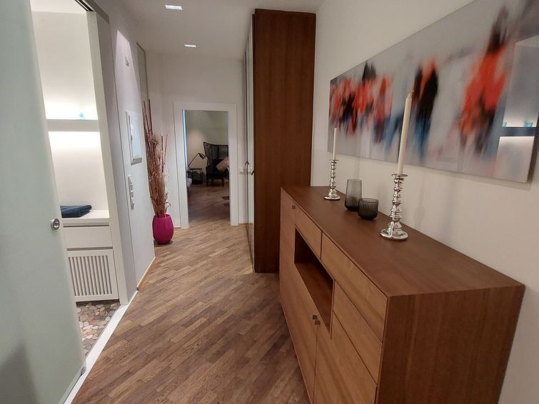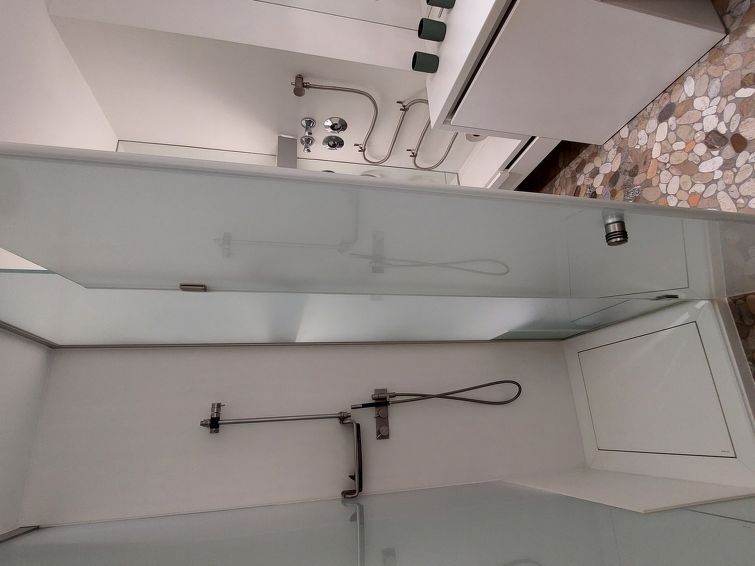Appartement 2-kamers 70 m2 op de 3e verdieping. Zeer modern en stijlvol ingericht: hal. Woon-/eetkamer met 1 uitschuifbaar bed (2 pers. 2 x 80 cm, lengte 200 cm), eettafel en Flatscreen TV. 1 2-pers. kamer met ventilator. Open keuken (oven, afwasmachine, 4 keramische glas kookplaten, broodrooster, waterkoker, magnetron, diepvriezer, elektrische koffiemachine, pads voor de koffiemachine (Nespresso)) met kleine bar. Douche/WC. Parketvloeren. Ter beschikking: wasmachine, strijkijzer, haardroger. Internet (WiFi, gratis). Niet rokers woning.