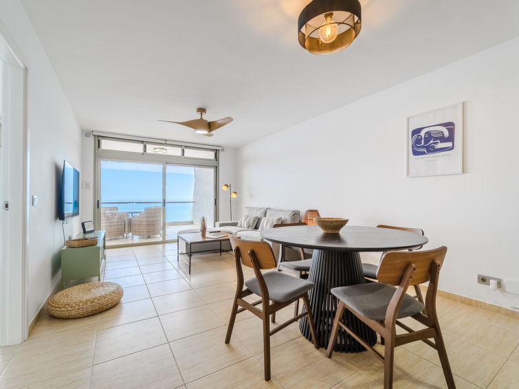 "Punta del Sol", appartement 3-kamers 110 m2 op de 1e verdieping. Het objekt is geschikt voor 4 volwassenen. Ruim en licht, doelmatig en comfortabel ingericht: woon-/eetkamer met Digitale TV en ventilator. Uitgang naar het balkon. 1 kamer met 1 2-pers bed (1 x 150 cm, lengte 190 cm), Digitale TV en ventilator. 1 kamer met 1 2-pers bed (1 x 150 cm, lengte 190 cm), ventilator. Keuken (oven, 4 keramische glas kookplaten, broodrooster, waterkoker, magnetron, elektrische koffiemachine). 2 douche/WC's. Geen verwarmingsmogelijkheid. Groot balkon. Terrasmeubelen. Zeer mooi uitzicht op zee. Ter beschikking: wasmachine, strijkijzer, haardroger. Internet (WiFi, gratis). Parkeerplaats nr. 13 (overdekt). Geschikt voor families. Niet rokers woning. Brandblusser. VV-38-4-0113161