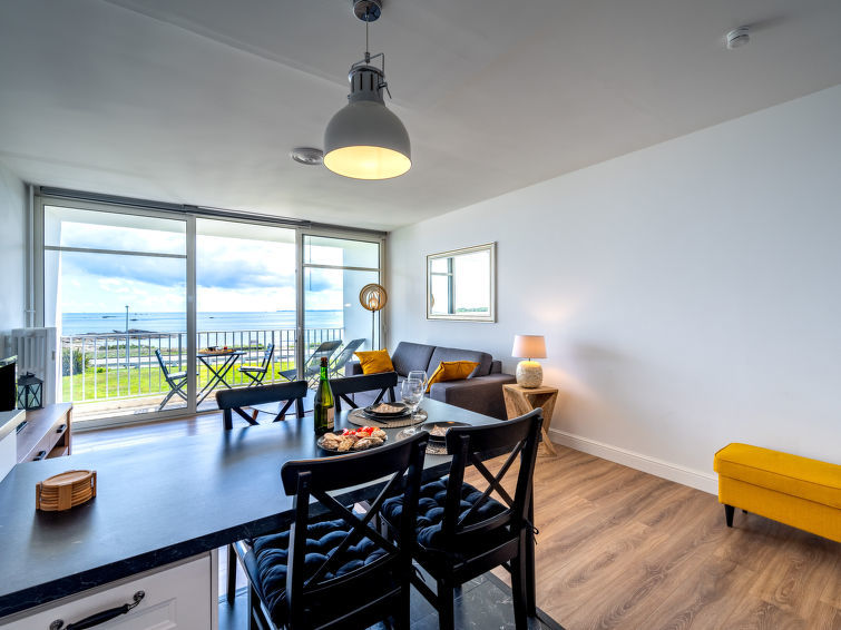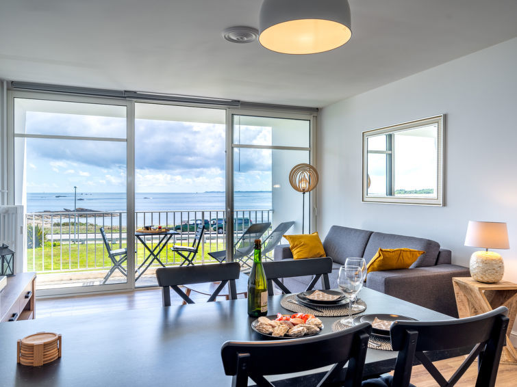 "Résidence Les Trois Iles", appartement 1-kamer 34 m2 op de 1e verdieping. Comfortabel ingericht: woon-/eetkamer met 1 2-pers divanbed (1 x 160 cm, lengte 190 cm), TV (Flatscreen TV). Uitgang naar het balkon. Keuken (oven, 3 keramische glas kookplaten, broodrooster, elektrische koffiemachine, combimagnetron). Bad/WC. Gas-verwarming. Balkon 6 m2. Balkonmeubilair. Zeer mooi uitzicht op zee. Ter beschikking: wasmachine. Internet (WiFi, gratis). Parkeerplaats. Niet rokers woning. Rookmelders. Aanbod door een particulier volgens art. 155, IV van CGI. 56186 000532 8D