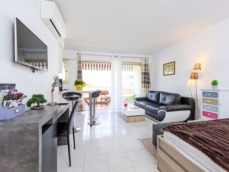 Appartement 1-kamer 27 m2 op de 4e verdieping. Volledig gerenoveerd in 2016, zeer mooi ingericht: woon-/eetkamer met 1 2-pers bed (160 cm, lengte 190 cm), TV (Flatscreen TV), air-conditioning. Uitgang naar het terras. Open keuken (oven, afwasmachine, 3 inductiekookplaten, magnetron, diepvriezer, elektrische koffiemachine). Douche/WC. Heteluchtverwarming. Terras 8 m2. Terrasmeubelen. Ter beschikking: wasmachine. Internet (Internet (WiFi), extra). Rookmelders. 06029004080HT