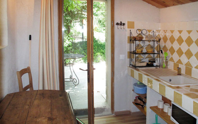 "Giono (SNC106)", studio 1-kamer 30 m2. Gerenoveerd, rustiek en gezellig ingericht: woon-/slaapkamer met 2 bedden (100 cm, lengte 200 cm). Uitgang naar het terras. Kleine kookhoek (2 kookpitten (vlammen), broodrooster, waterkoker, magnetron, elektrische koffiemachine) met eettafel. Uitgang naar het terras. Douche/WC. Gas-verwarming. Terras overdekt. Terrasmeubelen. Uitzicht op de tuin en het landschap. Ter beschikking: Internet (Internet (WiFi), gratis). Maximaal 1 huisdier/hond toegestaan.