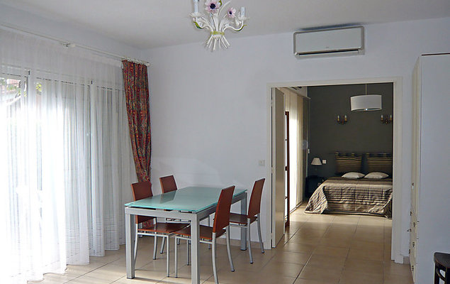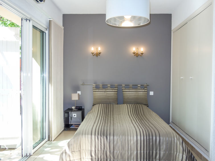 Appartement 3-kamers 55 m2, op de begane grond. Comfortabel en mooi ingericht: woon-/eetkamer met 1 2-pers divanbed (140 cm, lengte 190 cm), TV, DVD en air-conditioning. Uitgang naar het terras. Groot doorgangskamer met 1 2-pers bed (140 cm, lengte 190 cm), air-conditioning. Uitgang naar het terras. 1 kleine kamer met 1 x 2 stapelbedden (90 cm, lengte 190 cm), douche/WC. Open keuken (oven, afwasmachine, 3 inductiekookplaten, broodrooster, waterkoker, magnetron, diepvriezer, elektrische koffiemachine). Douche, aparte WC. Elektrische verwarming. Terras 50 m2, op het westen gelegen. Terrasmeubelen, elektrische barbecue. Ter beschikking: wasmachine, strijkijzer. Internet (Internet (WiFi), extra). Parkeerplaats nr. 4 et 8. Let op: TV alleen FR. Rookmelders. Toegang tot de kamer met stapelbedden via de tweepersoonskamer. Om naar de tuin te gaan, zijn er trappen.