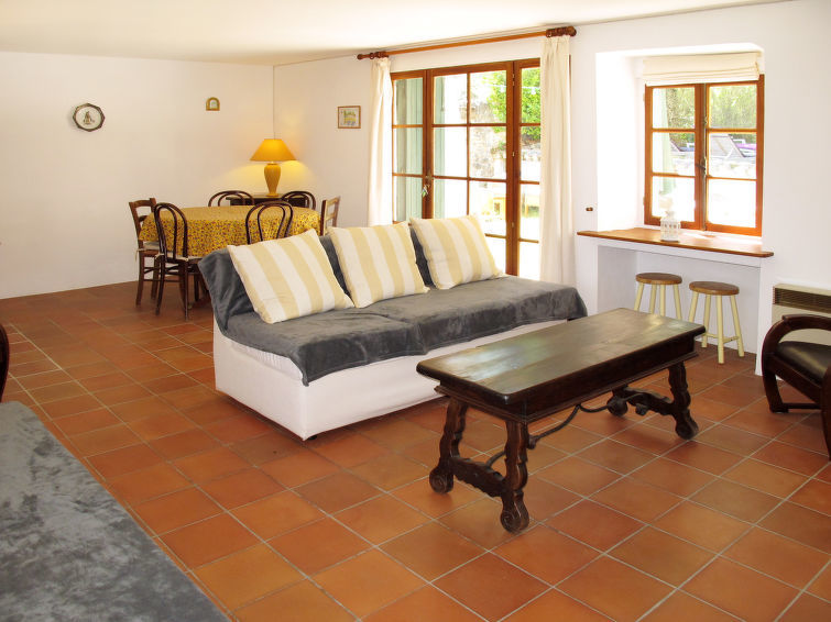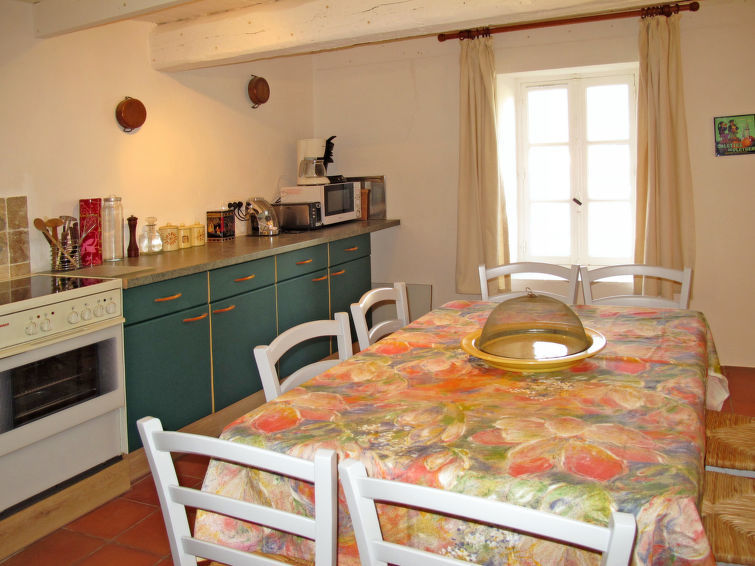 "La Chambaillarde (DLF120)", huis 5-kamers 165 m2 op 2 verdiepingen. Doelmatig en gezellig ingericht: groot hal. Woon-/eetkamer met open haard, eettafel en TV (Flatscreen TV), stereo-installatie en DVD. Uitgang naar het terras. Keuken (oven, afwasmachine, 4 keramische glas kookplaten, broodrooster, waterkoker, magnetron, diepvriezer, elektrische koffiemachine) met eettafel. Aparte WC. Bovenverdieping: 1 kamer met 1 2-pers bed (140 cm). 1 kamer met 1 bed (80 cm), 1 uitschuifbaar bed (1 pers.). 2 kamers, elke kamer heeft 2 bedden (90 cm, lengte 200 cm), air-conditioning. Bad/WC, douche. Elektrische verwarming. Terras 60 m2. Terrasmeubelen, barbecue (verrijdbaar), ligstoelen (8). Ter beschikking: wasmachine, strijkijzer, kinderstoel, kinderbed. Internet (Internet (WiFi), gratis). Let op: rookvrij huis. Maximaal 1 huisdier/hond toegestaan.