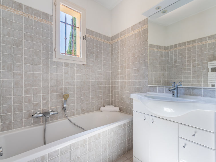 "Les Terrasses de Grimaud 2", appartement 4-kamers 90 m2. Gezellig ingericht: woon-/eetkamer met TV (Flatscreen TV). Uitgang naar het terras. 1 kamer met 1 2-pers bed (160 cm, lengte 190 cm). 1 kamer met 1 2-pers bed (140 cm, lengte 190 cm), douche/WC. 1 kamer met 2 bedden (90 cm, lengte 190 cm). Uitgang naar het balkon. Open keuken (oven, afwasmachine, 4 keramische glas kookplaten, broodrooster, waterkoker, magnetron, elektrische koffiemachine, pads voor de koffiemachine (Nespresso) extra). Badkamer, aparte WC. Air-conditioning, heteluchtverwarming. Balkon 14 m2, op het oosten gelegen, terras 30 m2 gedeeltelijk overdekt, op het zuidwesten gelegen. Terrasmeubelen. Uitzicht op het landschap. Ter beschikking: wasmachine, strijkijzer. Internet (WiFi, extra). Parkeerplaats nr. 204 (overdekt). Rookmelders. Aanbod door een particulier volgens art. 155, IV van CGI.