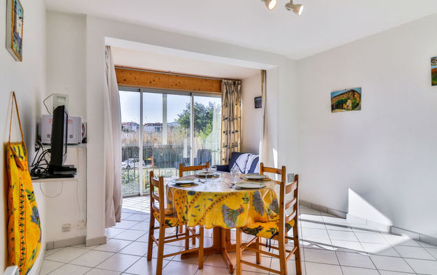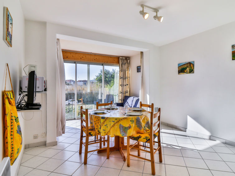 Appartement 2-kamers 38 m2 op de 1e verdieping. Doelmatig en mooi ingericht: woon-/eetkamer met panoramavenster met 1 2-pers divanbed (140 cm, lengte 190 cm), TV (Flatscreen TV). 1 kamer met 1 2-pers bed (140 cm, lengte 190 cm). Kookhoek (4-pits kookplaat, oven, broodrooster, magnetron, diepvriezer, elektrische koffiemachine). Douche, aparte WC. Elektrische verwarming. Uitzicht op de tuin. Ter beschikking: kinderbed tot 2 jaar. Parkeerplaats nr. 66 (omheind). Let op: appartement aan de binnenplaats. TV alleen FR. Rookmelders. 83070000640 EH