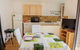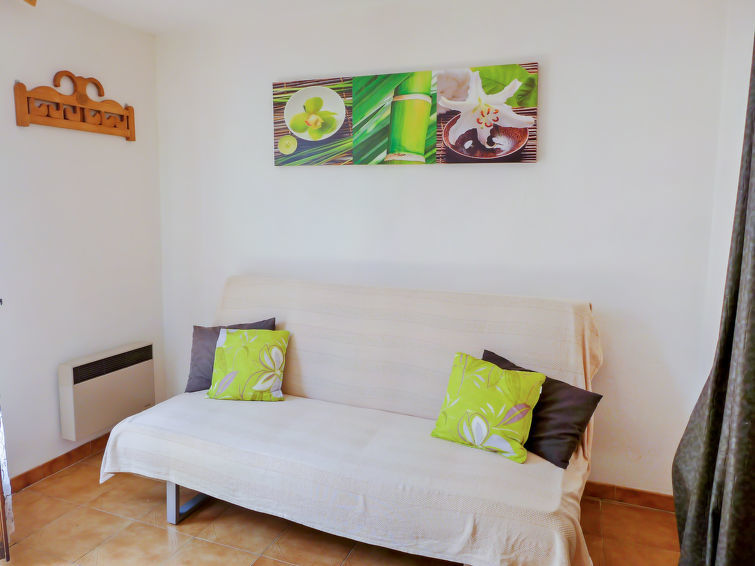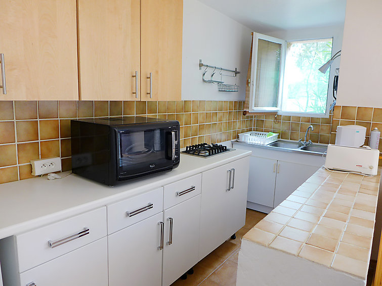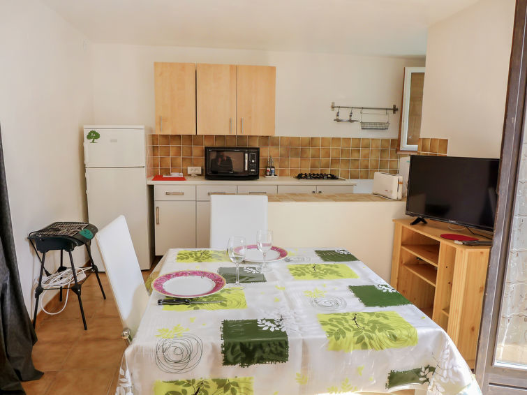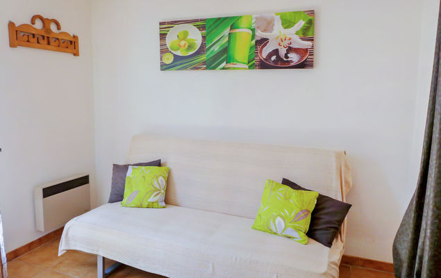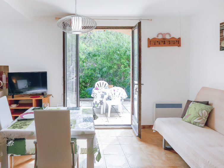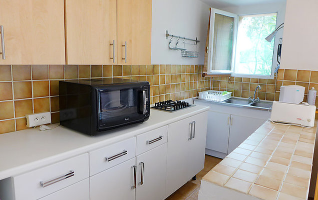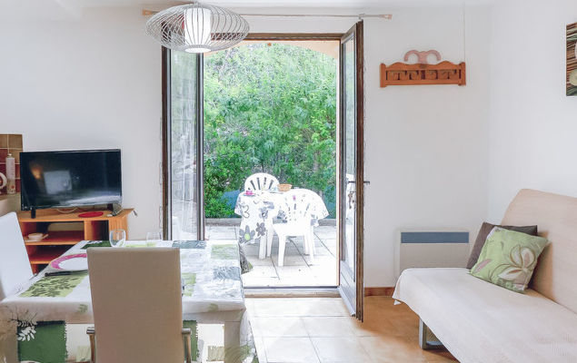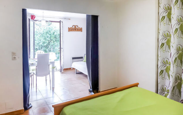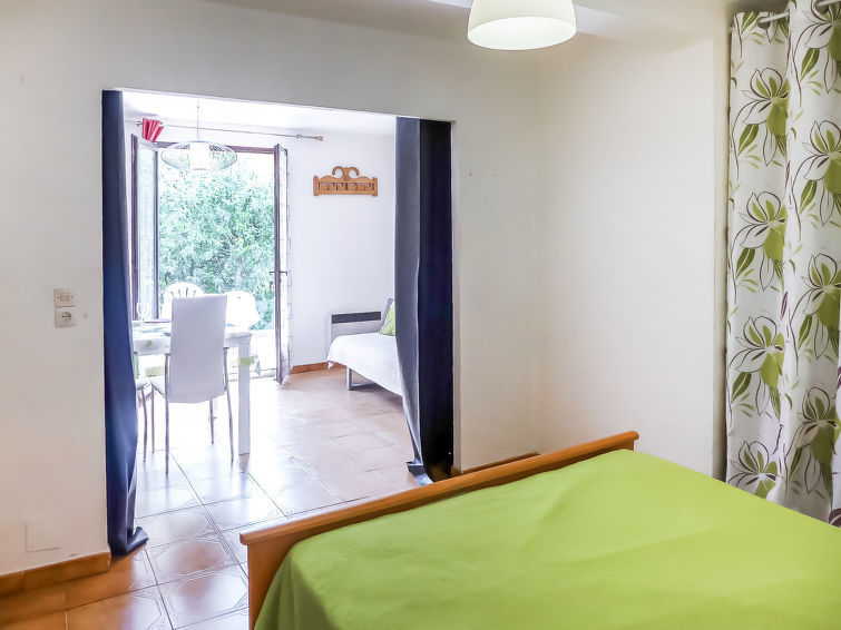 Appartement 1-kamer 35 m2, op de begane grond. Doelmatig ingericht: woon-/eetkamer met TV. Uitgang naar het terras. 1 open kamer met gordijn, zonder ramen met 1 2-pers bed (1 x 140 cm, lengte 190 cm), ventilator. Open keuken (2 kookpitten (vlammen), broodrooster, diepvriezer, elektrische koffiemachine, combimagnetron). Douche, aparte WC. Elektrische verwarming. Terras 16 m2, zithoek in de tuin. Terrasmeubelen. Ter beschikking: strijkijzer, haardroger. Internet (Internet (WiFi), extra). Parkeerplaats. Let op: 1 huisdier/hond toegestaan. TV alleen FR. Rookmelders. 83107000281MZ
