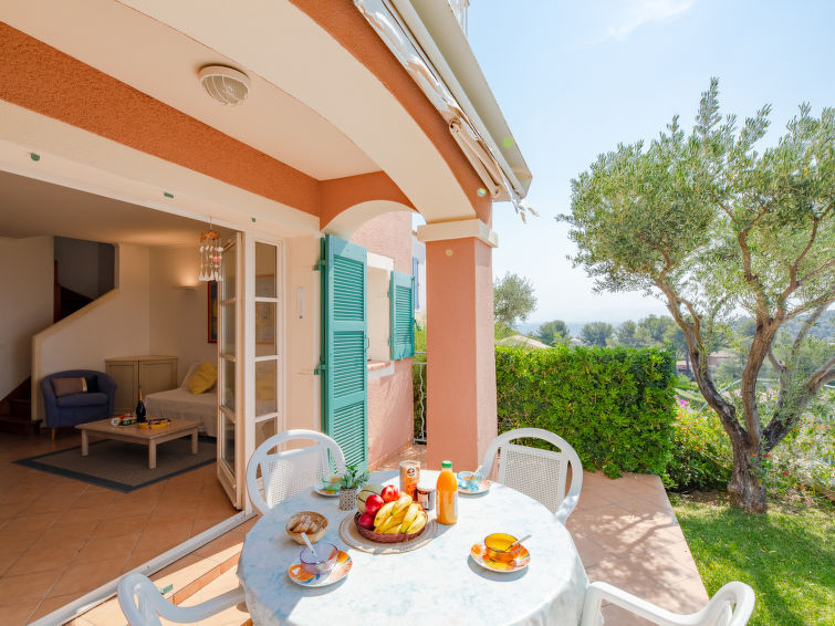 "Cap Estérel - Le Hameau (Mini Villa 35)", huis in een rij 3-kamers 35 m2 op 2 verdiepingen op de 2e verdieping. Mooi en gezellig ingericht: woon-/eetkamer met TV (Flatscreen TV). Uitgang naar het terras, naar de zitplaats in de tuin. Open keuken (oven, afwasmachine, 4 keramische glas kookplaten, broodrooster, waterkoker, magnetron, elektrische koffiemachine). Aparte WC. Bovenverdieping: 1 kamer met 2 bedden (90 cm, lengte 190 cm). 1 kamer met 1 2-pers bed (1 x 140 cm, lengte 190 cm), bad. Douche/WC. Elektrische verwarming. Terras 15 m2, zithoek in de tuin 15 m2. Terrasmeubelen, ligstoelen. Mooi uitzicht op zee. Ter beschikking: wasmachine. Internet (Internet (WiFi), extra). Parkeerplaats (1 Auto). Geschikt voor families. Niet rokers woning. Rookmelders. Aanbod door een particulier volgens art. 155, IV van CGI.