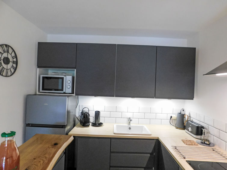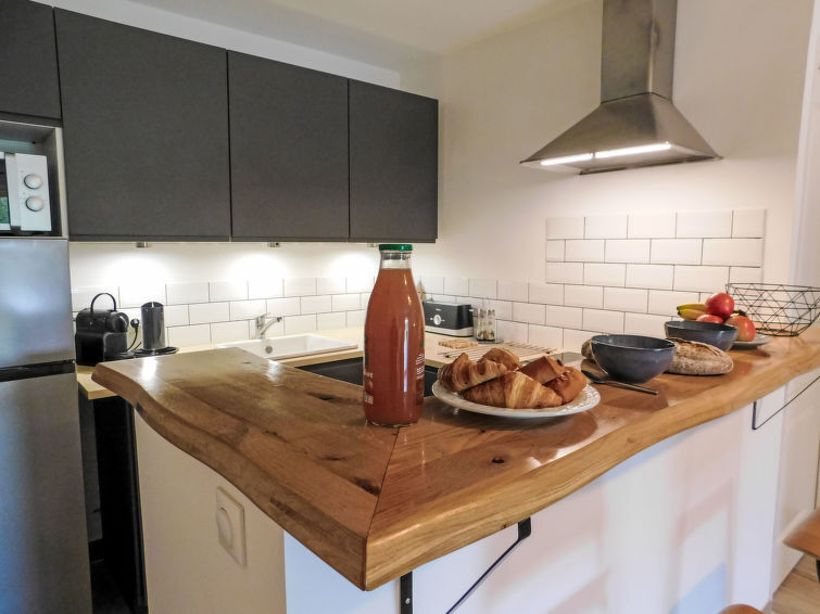 Appartement 2-kamers 40 m2, op de begane grond. Licht, comfortabel en mooi ingericht: woon-/eetkamer 23 m2 met TV (Flatscreen TV). Uitgang naar de tuin, naar het terras. 1 kamer met 1 2-pers bed (160 cm, lengte 200 cm). Open keuken (oven, afwasmachine, 3 inductiekookplaten, broodrooster, waterkoker, diepvriezer, elektrische koffiemachine, pads voor de koffiemachine (NESPRESSO) extra, combimagnetron). Douche, aparte WC. Elektrische verwarming. Terras 20 m2, op het zuidwesten gelegen, zithoek in de tuin, op het zuidwesten gelegen. Terrasmeubelen. Ter beschikking: wasmachine. Internet (WiFi, gratis). Parkeerplaats. Niet rokers woning. TV alleen FR. Rookmelders. Aanbod door een particulier volgens art. 155, IV van CGI. 1888137723388