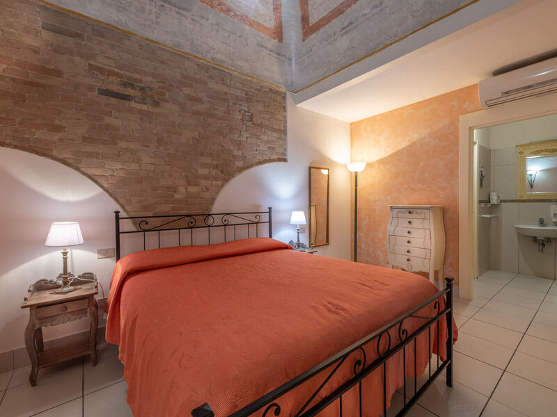 "Orange", appartement 2-kamers op de 2e verdieping. Zeer mooi ingericht: woon-/eetkamer met 1 2-pers divanbed, TV en air-conditioning. Uitgang naar het balkon. 1 2-pers. kamer. Kookhoek (4 kookpitten (vlammen), waterkoker). Uitgang naar het balkon. Douche/bidet/WC. Verwarming. Maximaal 1 huisdier/hond toegestaan. IT069058B4VSAAHGH9