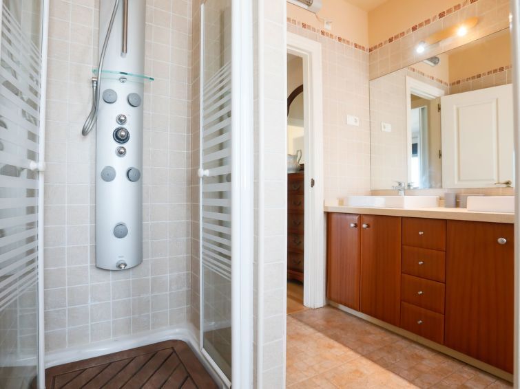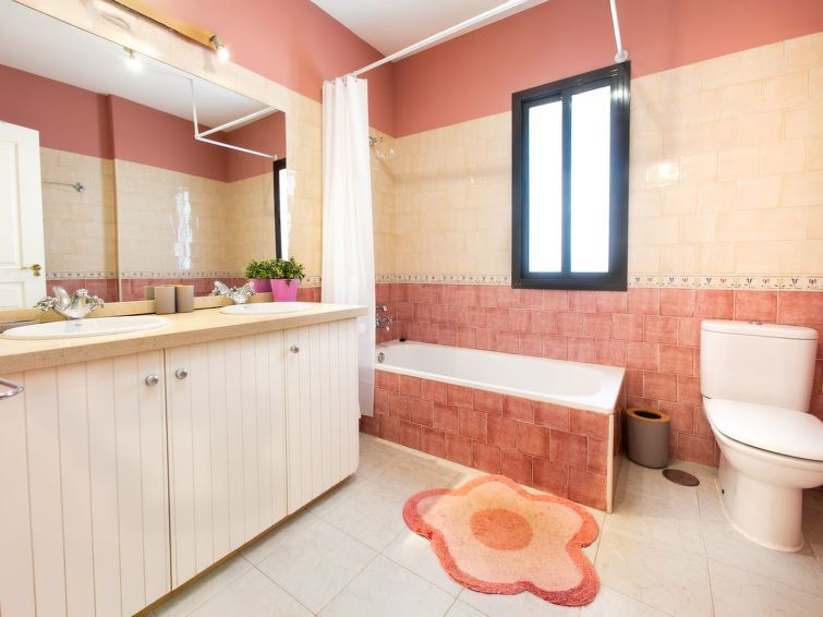 "Surinam", huis 6-kamers 250 m2, op het oosten gelegen. Eenvoudig en comfortabel ingericht: woonkamer met Digitale TV. Uitgang naar het terras. Woonkeuken (oven, afwasmachine, 3 keramische glas kookplaten, broodrooster, waterkoker, magnetron, diepvriezer, elektrische koffiemachine). Aparte WC. Boiler (80 liter). Souterrain: 1 kamer met 1 bed (90 cm, lengte 190 cm). 1 kamer met 4 bedden (90 cm, lengte 190 cm). Douche/WC. Bovenverdieping: 1 kamer met 1 2-pers bed (1 x 150 cm, lengte 200 cm), bad/WC. Uitgang naar het terras. 1 kamer met 1 bed (90 cm, lengte 190 cm). 1 kamer met 2 bedden (90 cm, lengte 190 cm). Bad/WC. Zithoek in de tuin. Terrasmeubelen, barbecue, ligstoelen (2). Uitzicht op zee en de bergen. Ter beschikking: wasmachine, strijkijzer, haardroger. Internet (WiFi, gratis). Garage op het terrein. TV alleen ES. VUT/MA/83899